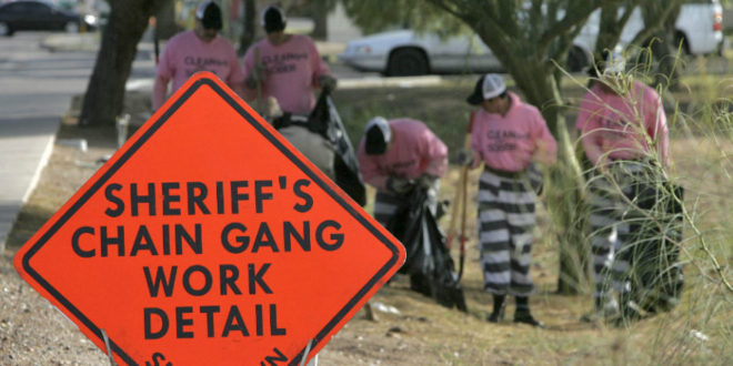 Eğer bir suçtan mahkum edilirseniz diğer işçileri irade dışı çalıştırma ve kölelikten koruyan yasalar tarafından korunmazsınız. Böylece, Birleşik Devletlerin her yerinde, binlerce mahkum, istençlerinin dışında hapishanelerde çok az bir para karşılığı veya parasız olarak çalışmaktadır.