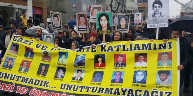 Eski Postane’ye gelen aileler burada yaşamını yitirenler anısına karanfil bıraktı. Aileler yaptığı konuşmada, Gazi katliamının cezalandırılmamasını kınadı. Konuşmada, “Bugün tek seçeneğimiz örgütlü olmaktır. Şehitlerimizi ve Gazi halkını selamlıyoruz” denildi.