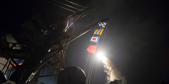 ABD uçakları gece saatlerinde Suriye ordusuna ait Şaryat hava üssünü bombaladı. Doğu Akdeniz’de bulunan 2 ABD gemisinden Humus yakınlarındaki Şaryat hava üssüne 50’nin üzerinde Tomahawk füzesi fırlatıldığı öğrenildi. Suriye İnsan Hakları Gözlemevi üssün kullanılamaz hale geldiğini açıkladı.