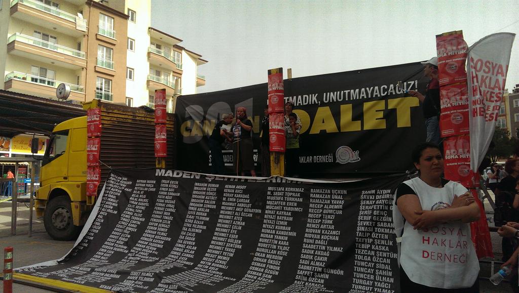 Sosyal Haklar Derneği’nin (SHD) çağrısıyla Soma’da kaymakamlığın engelleme girişimlerine rağmen gerçekleşen mitinge hayatını kaybeden madencilerin yakınları ve çeşitli kitle örgütleri katıldı. Miting öncesi madencilerin aileleri ve miting için kente gelenler yaşamını yitirenlerin mezarlarına ziyarette bulundu. Mitingde üzerinde yaşamını yitiren madencilerin isimlerinin bulunduğu “Unutmadık unutturmayacağız” ve “Somayı unutmadık unutmayacağız sorumlulardan hesap soracağız” yazılı pankartlar ile yaşamını yitiren madencilerin fotoğrafları taşındı. Miting yapılan konuşmaların ardından sona erdi