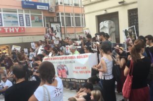 kategori: HaberlerKHK ile işten atılan ve işe geri dönme talebiyle 137 gündür açlık grevinde olan Nuriye Gülmen ve Semih Özakça ile dayanışmak için Ankara Güvenpark’ta düzenlenmek istenen eyleme yönelik polis saldırısı Kadıköy’de protesto edildi. Kadıköy Süreyya Operası önünde toplanan kitle Ankara’daki polis saldırısını protesto etti. Burada oturma eylemi gerçekleştirilirken, Gülmen ve Özakça’nın taleplerinin kabul edilmesi ve…