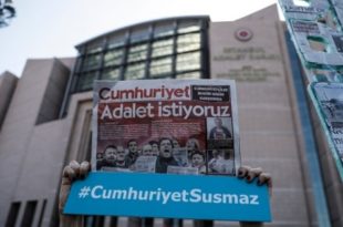 kategori: HaberlerCumhuriyet gazetesi çalışanları dün hâkim karşısına çıktı. Cumhuriyet’in yayın politikasının suçlama konusu edildiği dava kapsamında Cumhuriyet’in 11’i tutuklu 17 yazar, çizer, muhabir, avukat ve yöneticisi, sansürün kaldırılışı nedeniyle Basın Bayramı olarak kabul edilen dün ilk kez mahkeme karşısına çıktı. Cumhuriyetçilerin yargılandığı ilk duruşmaya Akın Atalay, Kadri Gürsel ve Musa Kart’ın savunmaları alındı.Alkışlarla karşılandılar Tutuklu 11…