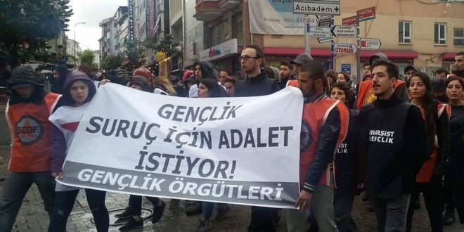 4 Mayıs 2017’de Urfa’da görülmeye başlanan Suruç Katliamı davasının ilk duruşması sanıksız olarak 21 aylık gizlilik kararından sonra başladı. Adaletsizlikler üzerinden var olan devletin Suruç’a olan kini bu patlamayla bitmedi. Devletin kinini geçen süre içerisinde Suruç yaralılarının farklı farklı bahanelerle gözaltına alınıp tutuklanmasında, duruşma günü yaralılara ve ailelere yönelik yapılan düşmanca tutumlarda gördük.