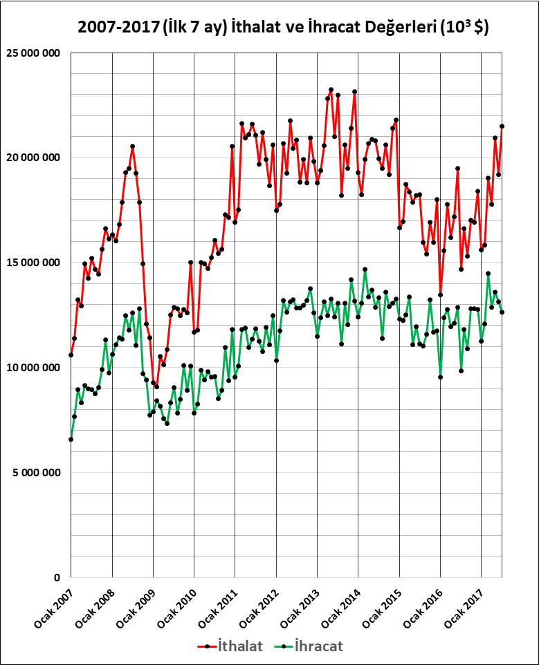 (Grafik 12: 2007-2017 İthalat-ihracat karşılaştırması)