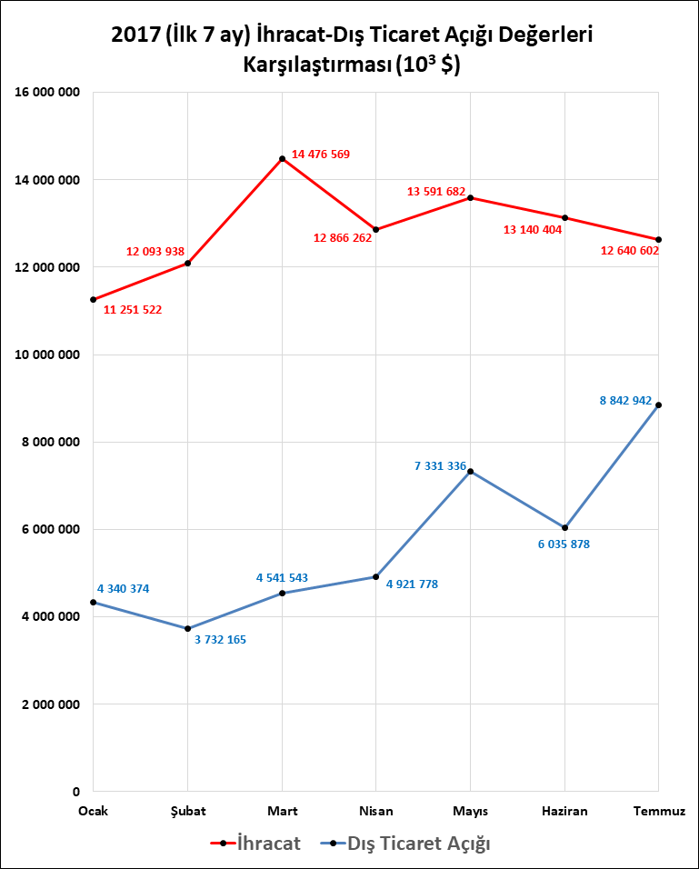 (Grafik 14: 2017 İlk 6 ay ihracat-dış ticaret açığı karşılaştırması)