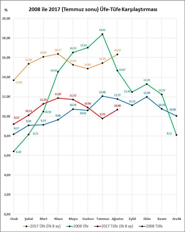 (Grafik 2: 2016-2017 (İlk 8 ay) Üfe-tüfe karşılaştırması)