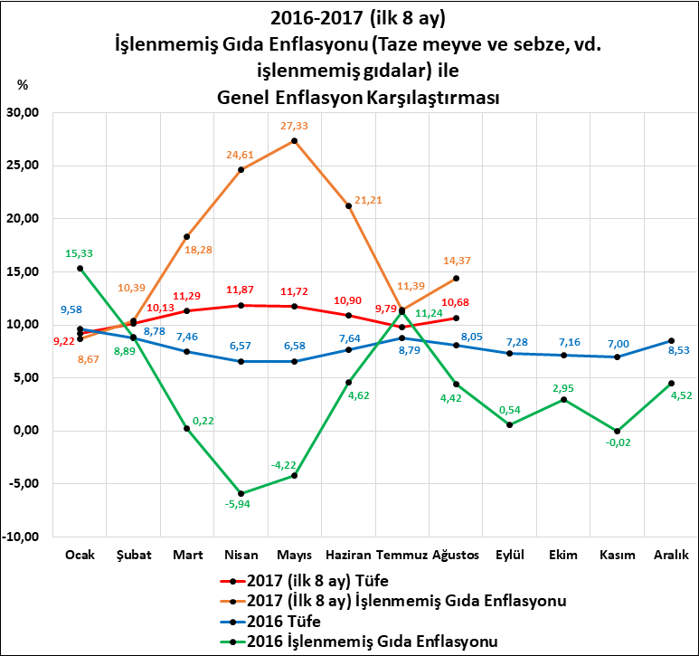 (Grafik 4: 2016-2017 (ilk 7 ay) İşlenmemiş gıda enflasyonu)