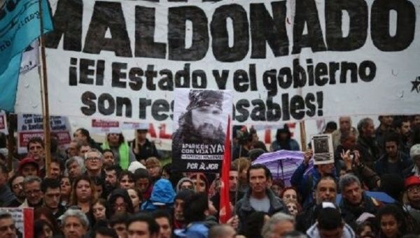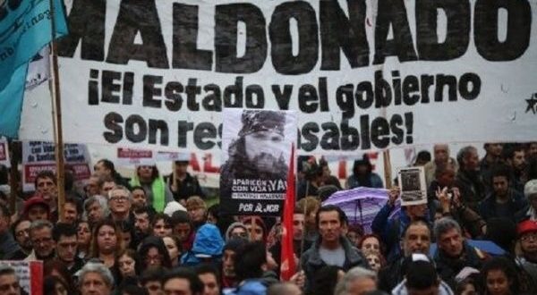 Mapuçe halkına destek eyleminde gözaltına alınan ve zorla kaybedilen Maldonado’nun sağ olarak geri getirilmesi için sokakları terketmeyen binler, darbeci Macri hükümeti üzerinde toplumsal basınç oluşturmuşlardı.