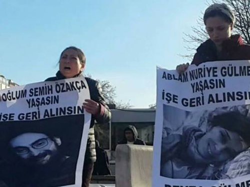Sultan Özakça ve Beyza Gülmen yaptıkları konuşmalarda, Nuriye ve Semih’in açlık grevlerinin 300. gününde olduklarını belirterek OHAL İnceleme Komisyonu’nun bir an önce onları işe iade etmesini istediler. Nuriye ve Semih için Bekir Bozdağ’ın söylediği “15 gün içinde dosyaları incelenecek” sözünü hatırlatarak, onlar “ölünce mi dosyaları incelenecek” dediler.