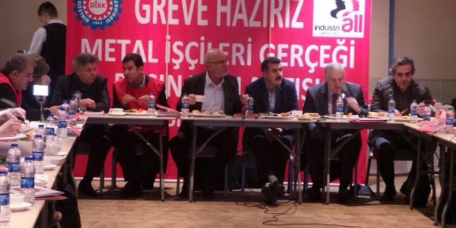 Tek Gıda İş ve Nakliyat İş başkanlarının da hazır bulunduğu toplantı, Birleşik Metal-İş Genel Başkanı Adnan Serdaroğlu’nun konuşmasıyla devam etti. Grev kararını açıklamak için basın toplantısını düzenlediklerini belirten Serdaroğlu, bu sözleşmenin 130 bin metal işçisinin yanı sıra diğer işçileri ve sözleşmeleri de etkilediğini belirtti.