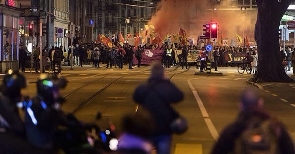 Zürih’deki protesto gösterisine ise en az 2 bin kişi katıldı. Eylemde anti kapitalist grupların yanı sıra küreselleşme karşıtları ve çevreciler de yer aldı.