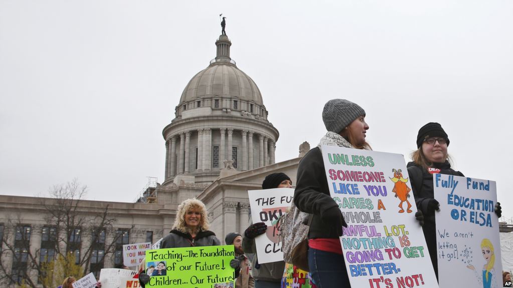 Amerika’nın Sesi’ne göre ABD’nin Oklahoma ve Kentucky eyaletlerinde on binlerce öğretmen daha iyi ücret ve eğitime daha fazla fon ayrılması talebiyle sokaklara döküldü. Bazı okullar öğretmenlerin greve gitmesi nedeniyle eğitime ara vermek durumunda kaldı.