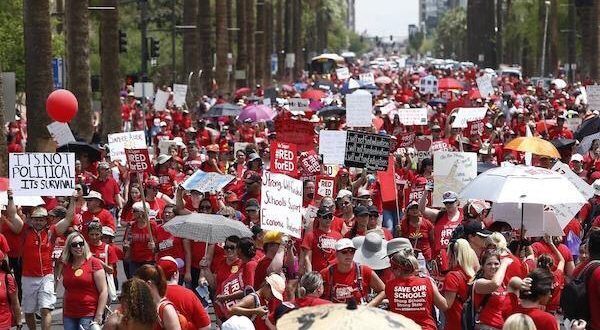 Arizona’nın başkenti Phoenix’te en az 50 bin öğretmenin katılımıyla yürüyüş gerçekleştirildi.