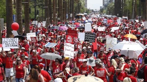 ABD’nin batısındaki Arizona ve Colorado eyaletlerinde öğretmenler “çalışma koşullarının iyileştirilmesi” talebiyle iş bıraktı. 1 milyonun üzerinde öğrencinin eğitim gördüğü 200’den fazla okulda dün ve bugün greve çıkldı.