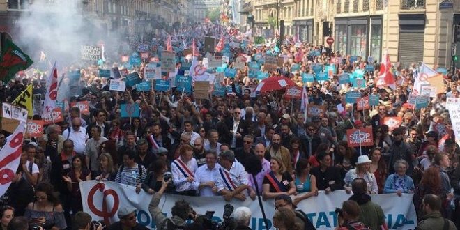 Fransa’nın üç büyük sendikası Fransa Demokratik İşçi Sendikaları Konfederasyonu (CFDT), Genel İş Konfederasyonu (CGT) ve İşçi Gücü’nün (FO) de dahil olduğu 9 sendika, Macron’un politikaları ve çok sayıda alanda yürürlüğe konulan yasal değişiklikleri protesto amacıyla 22 Mayıs ve 26 Mayıs için grev ve sokaklara çıkma çağrısı yaptı.