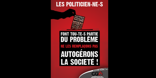 Fransız anarşist örgüt CGA’nın (Coordination des groupes anarchistes – Anarşist Gruplar Koordinasyonu) 7 Mayıs 2017 tarihinde Fransa’da gerçekleşen Cumhurbaşkanlığı seçimleriyle ilgili değerlendirmesini güncel anlamı nedeniyle yayınlıyoruz.