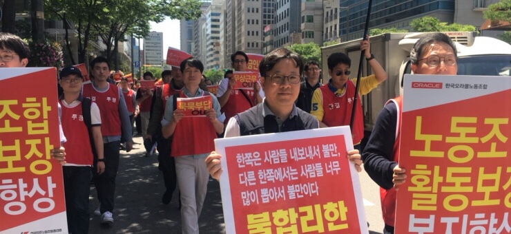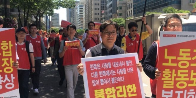 Güney Kore’de, ABD merkezli, bilişim teknolojileri tekeli Oracle şirketinde çalışan işçiler 16 Mayıs’tan bu yana grevde. Şirketin, üyesi oldukları sendikayı tanımaması ve 10 yıldır dondurulmuş ücretlerin yükseltilmesi konusunda adım atmaması üzerine işçilerin greve başladığı belirtiliyor.