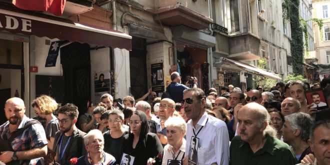 İHD önünde toplanan eylemcilerin, Galatasaray Meydanı’na önleri Büyük Parmakkapı Sokağı’nın çıkışında polis tarafından kesildi. Burada oturma eylemine başlayan Cumartesi Anneleri ve destekçileri polisin saldırı tehditlerine rağmen basın açıklamasını gerçekleştirdi.