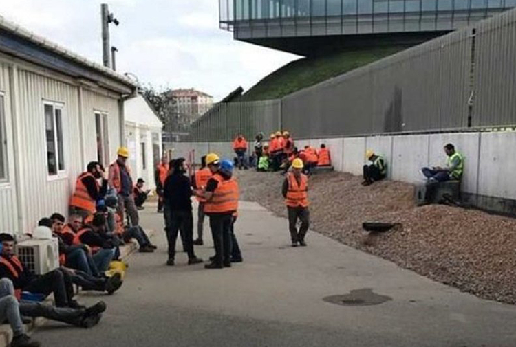 Garanti Bankası’nın teknoloji kampüsü inşaatında çalışan işçiler, 2 aydır ücretleri verilmediği için iş bıraktı.