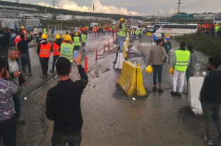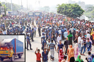 kategori: HaberlerBangladeş’te maaşlarını alamayan tekstil işçileri isyan etti. Polis saldırısı sonrasında çıkan çatışmada 50 işçi ve 5 polis yaralandı. Farklı fabrikalardan aylardır maaşlarını alamayan yüzlerce işçi, sabah saat 07.00’de Narayanganj şehrinin Adamjee bölgesinde yer alan Serbest Üretim Bölgesi’nin (EPZ) önünde toplanarak gösteri düzenledi. Adamjee-Narayanganj yolunu trafiğe kapatarak işçiler, bir kamyonu ateşe verdi. Polisin saldırısı sonucu işçilerle…