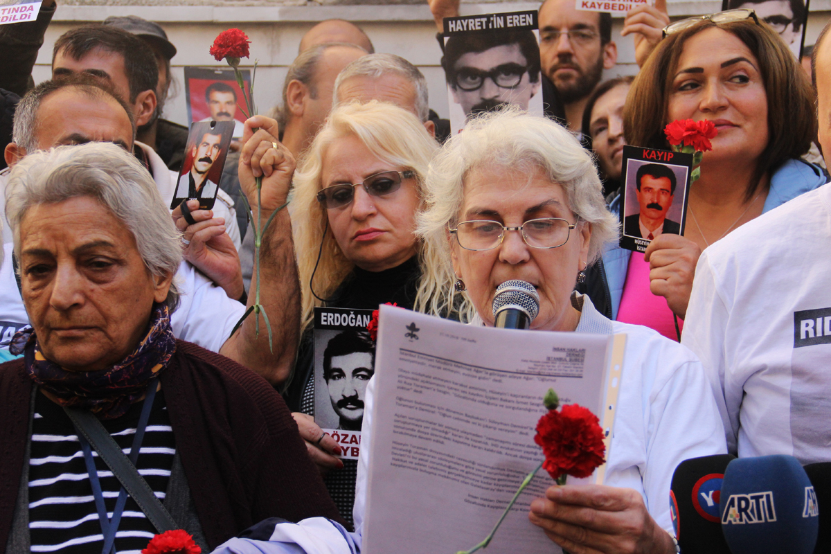 kategori: HaberlerCumartesi Anneleri eylemlerinin 709. haftasında da İHD İstanbul Şubesi önünde toplandı. Bu hafta gerçekleşen eylemde gözaltında kaybedilen Hüseyin Toraman’ın akıbetini sordu 700. haftadan beri Cumartesi Anneleri’nin eylemlerini Galatasaray Meydanı’nda gerçekleştirilmeleri polis tarafından engelleniyor. Bu hafta da kayıp yakınları basın açıklamasını İnsan Hakları Derneği (İHD) İstanbul Şubesi’nin bulunduğu Çukurluçeşme Sokak’ta gerçekleştirdi. Ellerinde karanfiller ile kayıplarının fotoğraflarını…