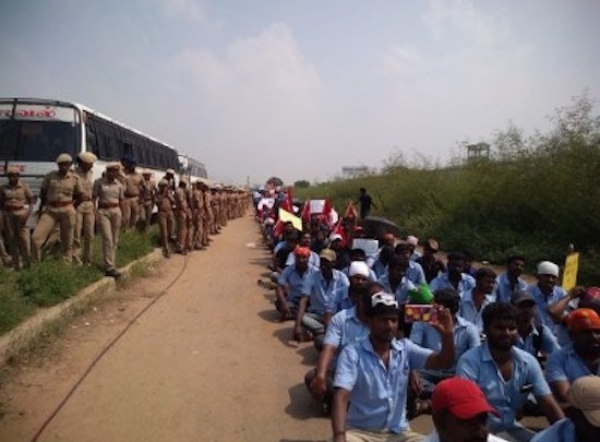 Hindistan’da üç fabrikadan binlerce işçinin yürüyüşüne polis saldırdı