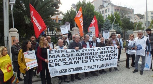 KESK İstanbul Şubeler Platformu saat 16.00’da Cağaloğlu’ndaki İstanbul Defterdarlığı önünde basın açıklaması yaptı. Eylemde enflasyonun gerçekte yüzde 45’lere vardığına, bütçede emekçinin söz hakkının olmadığına dikkat çekilerek kamu emekçilerinin maaşlarıyla 2008’de 23 çeyrek altın, şimdiyse 9 çeyrek altın alabildiği belirtildi.