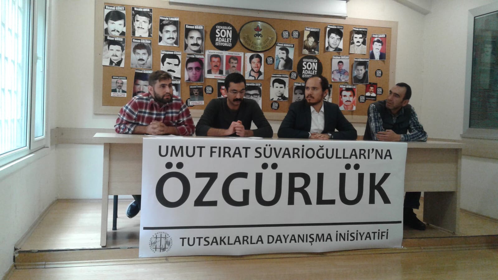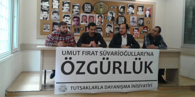 Tutsaklarla Dayanışma İnisiyatifi sözcüsü Emrah Topaloğlu’nun giriş konuşmasının ardından Süvarioğulları’nın avukatı Gökhan Soysal hukuki süreç hakkında bilgilendirme yaptı. Ardından Tutsaklarla Dayanışma İnisiyatifi adına hazırlanmış basın metninin okunmasına geçildi.