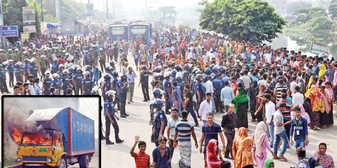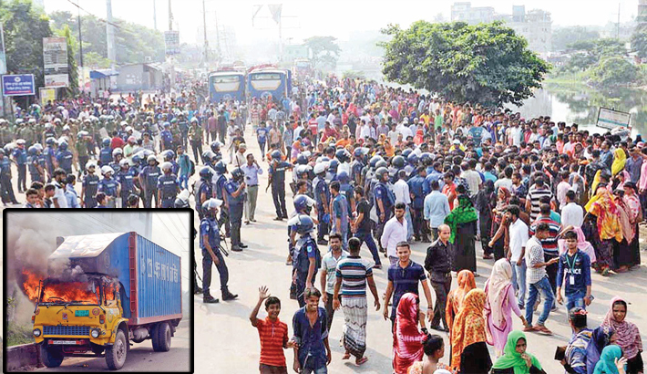 Adamjee-Narayanganj yolunu trafiğe kapatarak işçiler, bir kamyonu ateşe verdi. Polisin saldırısı sonucu işçilerle polisler arasında çıkan arbede 5 polis ve 50 işçinin yaralandığı belirtildi.