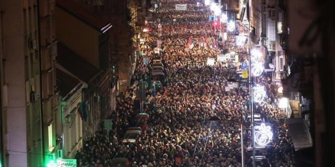 Gazete Karınca’nın haberine göre başkent Belgrad’da bir araya gelen binlerce protestocu “Hırsız Vucic” sloganı attı, “Yalanlara son” pankartları taşıdı.