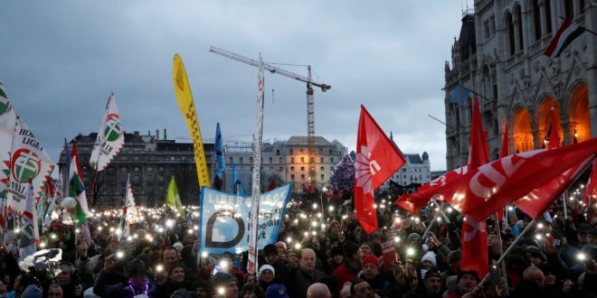 Macaristan’ın başkenti Budapeşte’dek Viktor Ordban hükumetinin yıllık zorunlu fazla mesaileri 400 saate çıkartan yasa değişikliğine karşı binlerce kişi eylem yaptı. Dün (5 Ocak) “Köle yasası” olarak adlandırılan “fazla mesai” yasasını protesto etmek için Budapeşte’deki Kahramanlar Meydanı’nda toplanan binlerce kişi parlamento binasının bulunduğu Kossuth Meydanı’na yürüdü.