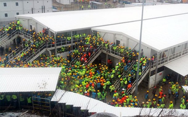 İstanbul İkitelli’de yapımı süren Başakşehir Şehir Hastanesi’nin şantiyesinde çalışan işçiler, yemekhane koşullarının iyileştirilmesi talebiyle iş bıraktı. Rönesans Holding tarafından yapılan İstanbul Başakşehir Şehir Hastanesi şantiyesinde çalışan işçiler bir süredir devam eden yemek probleminin çözülmemesi üzerine iş bırakarak yürüyüşe geçti.