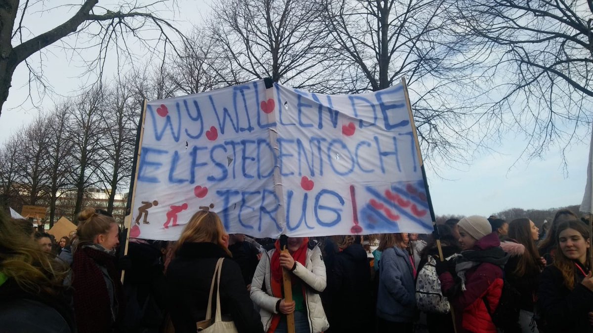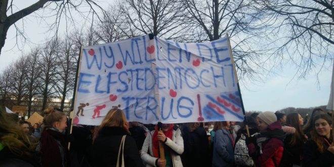 Çoğunlukla ortaokul ve lise öğrencilerinden oluşan eylemciler ana yolları kullanarak Hollanda Parlamentosu’na yürüdü.