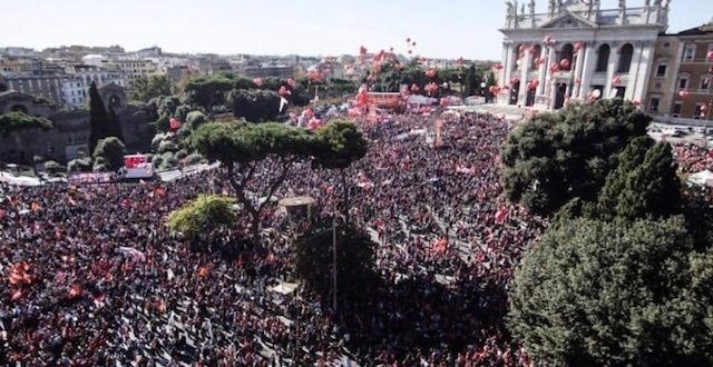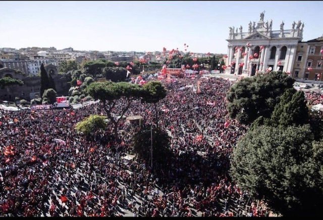 İtalya’da, ülkenin en büyük işçi sendikaları CGIL, CISL ve UIL tarafından düzenlenen gösteride hükümetin ekonomi-politikalarının yanı sıra göçmen karşıtı uygulamaları protesto edildi. La Repubblica gazetesi gösteriye yaklaşık 200 bin kişinin katıldığını belirtti.