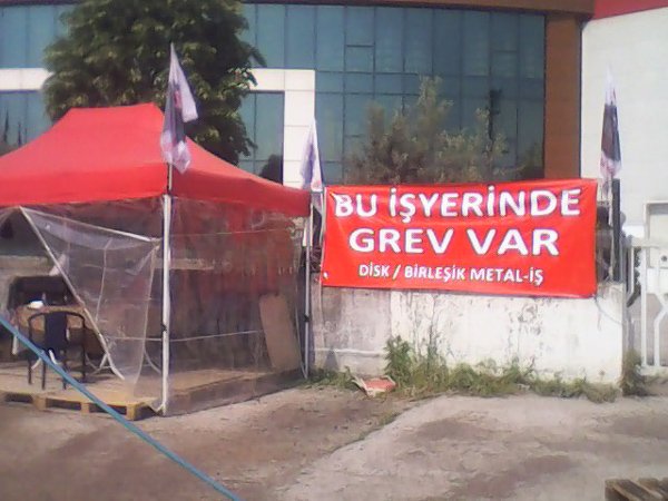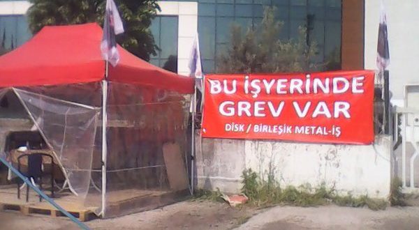 Kocaeli’nin Başiskele ilçesinde kurulu bulunan ve mutfak eşyaları üreten, İtalyan ortaklı Cem Bialetti fabrikasının önüne kurulan grev çadırında 24 saat boyunca duruluyor. İki vardiya çalışılan fabrikada patronun ürün çıkarma hamlelerine karşı geceleri de bekleyiş sürüyor.