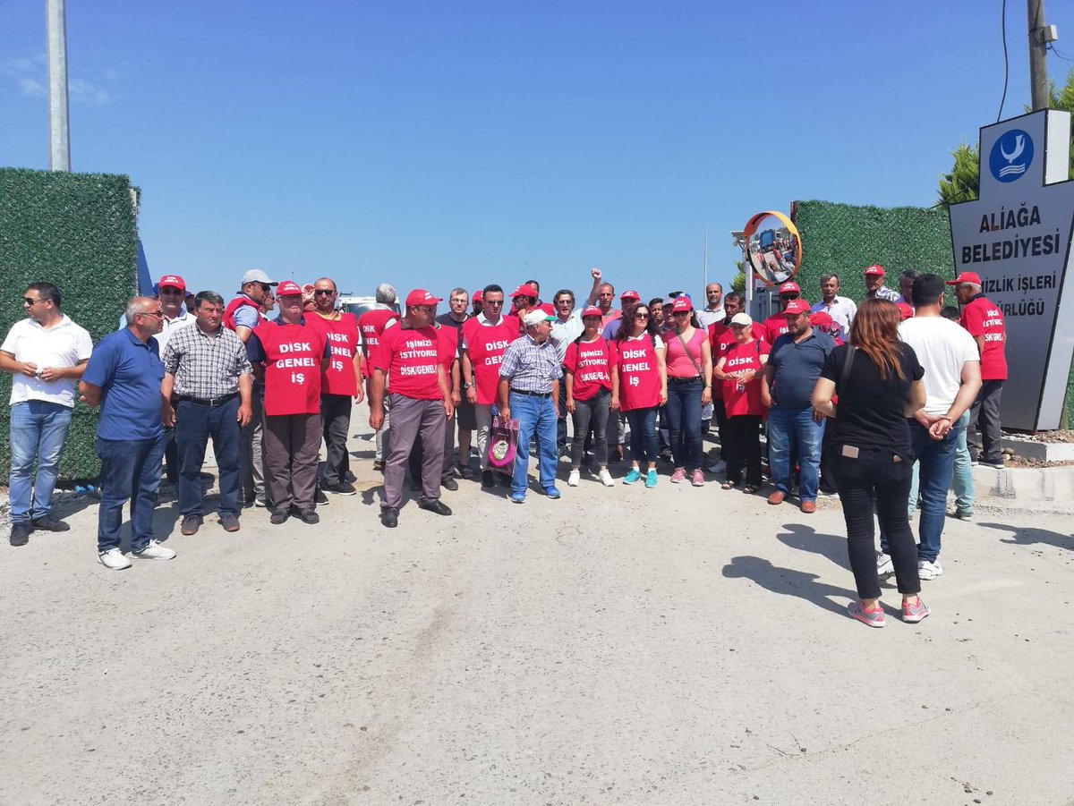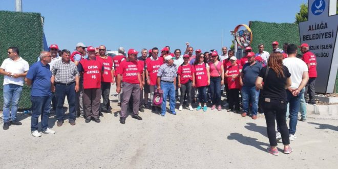 MHP’li Aliağa Belediyesinde 132 işçinin ardından 47 işçi daha işten atılınca bugün sabah vardiyasına gelen temizlik işçileri grev çıktı.