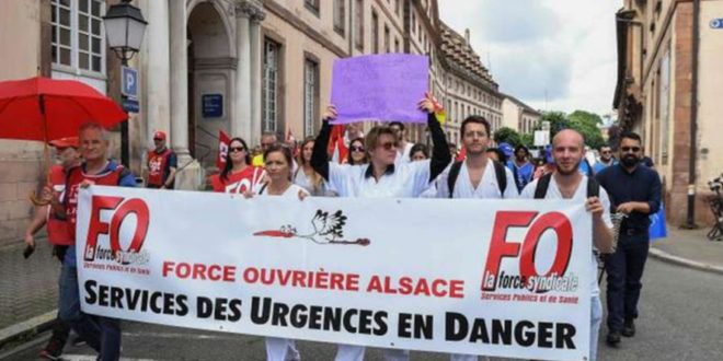 Sermaye devletinin Macron eliyle uygulamaya koyduğu kamuda reformlar sağlık alanında da “Sağlıkta Yasa Projesi” olarak devreye sokulmak isteniyor. Seslerini duyurabilmek için birçok kez sokaklara çıkan sağlık emekçileri sermayenin sağlıkta yıkım politikalarına boyun eğmemekte kararlı görünüyor. Mart ayı ortasında Paris St Antoine hastanesinde başlayan grev 4.cü ayında sürerken Temmuz ayının ilk günlerinde 153 hastanenin acil servisi,100 EHPAD-Yaşlılar Yurdu olmak üzere her gün yenileri eklenerek toplamda 510 sağlık kurumunda süresiz grev olarak devam ediyor. Grevci ya da izinli sağlıkçılar, yer yer polis gücü kullanılarak göreve döndürmeye zorlanılıyor. Çalışma koşullarının dayanılamaz hale gelmesi nedeniyle Besançon’da görevli hemşirelerin tümünün geçtiğimiz günlerde hastalık izni aldığı açıklandı. Birçok hastanede ise doğumların personel yetersizliği nedeniyle gerçekleştirilemediği servislerin kapandığı ve 40-50 kilometre uzaklıkta bulunan hastanelere yönlendirildiği belirtiliyor.