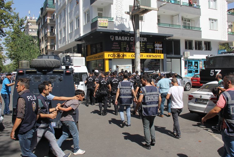 Amed’te HDP milletvekilleri ve belediye eşbaşkanlarının da aralarında bulunduğu bir grup Lise Caddesi’nde toplandı. Açıklama sonrasında yürüyen eylemcilere polisler TOMA’larla saldırdı. Saldırıda en az on kişi gözaltına alınırken, grup ara sokaklara dağıldı. Eylemler ve polis saldırıları gün boyu Diyarbakır’ın çeşitli yerlerinde devam etti.