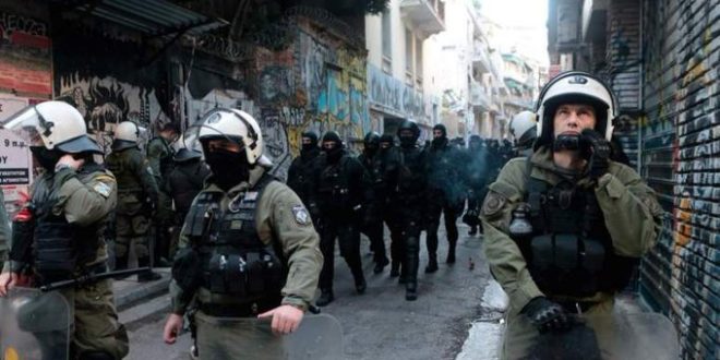 Bu sabah saatlerinde Yunanistan’ın başkenti Atina’nın Exarcheia bölgesinde bulunan, anarşistlerin ve göçmenler tarafından kullanılan en az beş işgal evine polis tarafından baskın düzenlendi.