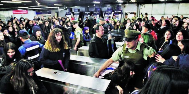 Şili’de toplu taşıma ücretlerine yapılan zamma karşı öğrencilerin eylemleri büyüyerek devam ediyor. Başkent Santiago’da lise öğrencileri günlerdir zammı protesto etmek için metroya ücretsiz binerek seyahat ediyorlar.