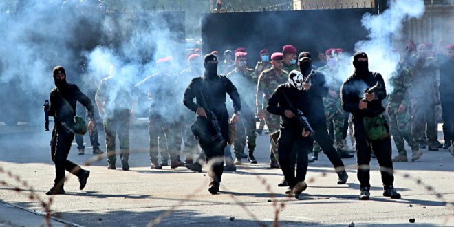 Irak kolluk kuvvetleri, Bağdat’ta hükümet binalarının bulunduğu Yeşil Bölge’ye ilerlemek isteyen eylemcilere de müdahale etti.