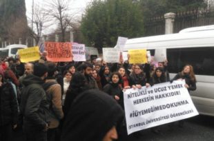 kategori: Haberlerİstanbul Üniversitesi öğrencileri, üniversite yemekhanelerinde kahvaltı öğününün kaldırılması nedeniyle eylem gerçekleştirdi. Üniversite yönetiminin 2 Ocak’tan itibaren yemekhanelerde kahvaltı verilmeyeceği yönünde kararına tepki gösteren öğrenciler hukuk fakültesi önünde toplandı. Burada forum gerçekleştiren öğrenciler “Nitelikli ve ucuz yemek herkesin hakkıdır” pankartı açtı. Eylemde, “Müşteri değil öğrenciyiz” sloganlarıyla Beyazıt Ana Kapı önüne yürüdü. Öğrencilerin eylemini engellemek isteyen üniversite…