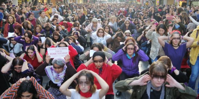 İzmir Alsancak’ta bir araya gelen yaklaşık bine yakın kadın, Las Tesis dansıyla kadına yönelik şiddete protesto etti. Kadınlar polisin saldırı tehditlerine rağmen protesto gösterilerini gerçekleştirirken, daha sonra yapılan açıklamada, “Şili’de başlayan Las Tesis hareketi tüm dünyaya yayıldı. Biz de İzmir’den bu mücadeleye ortak olduk. Buradan şiddet gören, tecavüze uğrayan kadınlara selam göndermek istedik, yalnız değilsiniz demek istedik. Kadın meclislerinin başlattığı bu dayanışmaya, diğer sivil toplum kuruşları temsilcileri de katıldı” ifadeleri kullanıldı.