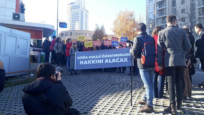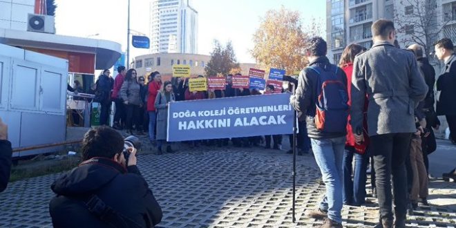 Aylardır ücretlerini alamayan Doğa Koleji öğretmenleri bugün greve başladı. Doğa Koleji’nin Ankara Bağlıca, Eryaman, Çukurambar, Batıkent ve Birlik, İzmir Mavişehir-2, İstanbul GOP, Şişli, Bayrampaşa, Bahçehir, Sarıyer, Topkapı ve Avcılar kampüslerinde çalışan öğretmenler İş Kanunu’nun 34. maddesi gereğince iş bırakırken, kurumun Ataşehir’deki yönetim binasında bir araya gelen öğretmen ve veliler, “Doğa Koleji Öğretmenleri Hakkını Alacak” yazılı afiş ve “İş Kanunun 34. maddesine dayanarak iş bırakıyoruz” yazılı dövizler taşıdı.