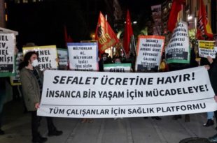 kategori: HaberlerAsgari Ücret Tespit Komisyonu’nda 2021 yılında geçerli olacak asgari ücret, yüzde 21 artışla net 2 bin 825 lira 90 kuruş olarak belirlendi. Belirlenen sefalet zammına karşı bir çok yerde eylemler gerçekleştirildi. DİSK, Türk-İş ve Hak-İş Konfederasyonları açıklanan zamma karşı İstanbul, Adana, Diyarbakır, Eskişehir, İzmir, Antep, Ankara, Samsun ve İzmit’te basın açıklamaları gerçekleştirdi. Ortak açıklamaların yanı…