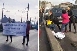 kategori: Haberlerİşçi Temsilcileri Konseyi (İTK) ve Emeğin Gücü Derneği üyeleri Asfa Group ve Enka/Soha şirketleri firmaları tarafından Sırbistan‘da çalıştırılan ve ücretleri ödenmeden sınır dışı edilmek istenen işçilerle dayanışmak için Galata Köprüsü‘nü trafiğe kapattı. Galata Köprüsü’nde “Asfa Group& Enka & Soha’da Hak Gaspına Son” yazılı pankart açan eylemciler “İşçiler sizin köleniz değil”, “Ücret haktır gasp edilemez”, “İnşaat işçisi köle değildir”…