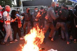 kategori: HaberlerHakkındaki yolsuzluk davası ve yeni tip koronavirüs (Kovid-19) salgınını yönetmedeki başarısızlığı nedeniyle Netanyahu’nun istifası talebiyle eylemler 6. ayında sürüyor. Dün (26 Aralık) de İsrail’in bir çok noktasında eylemler düzenlendi.m Netanyahu’nun Kudüs’teki Balfour Caddesi’ndeki resmi konutu önünde eyleme yönelik polis saldırısında 6 kişi gözaltına alındı. Bazı noktalarda ise Netenyahu yanlıları eylemcilere saldırdı. Yasaklama kararına rağmen yaklaşık…