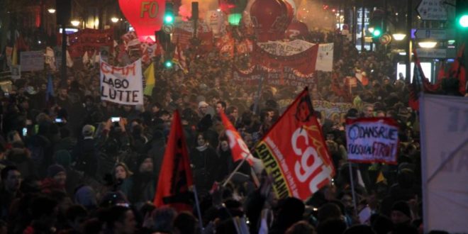 Fransa’da emeklilik reformunun geçici olarak vazgeçildiğinin açıklanmasına rağmen emekçiler tasarı tamamen geri çekilene kadar grevleri sürdürmekte kararlı. Ulusal Demiryolları SNCF, Paris ve banliyö toplu ulaşım ağı RATP çalışanlarının 5 Aralık’ta başlattıkları grevlerin eğitim, sağlık, enerji, rafineri, havayolu, hukuk gibi tüm sektörlerin de katılmasıyla aralıksız sürüyor. Öte yandan CGT Ulusal Liman ve Rıhtım Federasyonu’nda örgütlü liman işçileri de 14 Ocak günü başlattıkları 72 saatlik “ölü liman” sloganıyla grevde.
