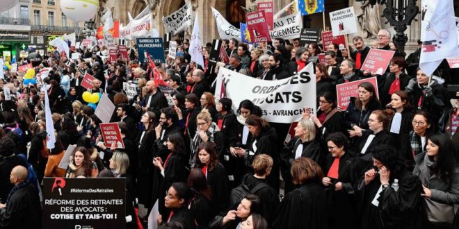 Fransa’da hükümetin getirmek istediği puan bazlı emeklilik sistemine karşı başlayan eylemler sürüyor. Dün pek çok şehirde binlerce avukat da emeklilik reformunu protesto etmek için greve çıktı ve Paris’te miting düzenledi.