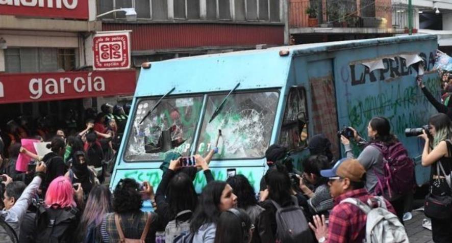 Ayrıca devlet başkanı Andres Manuel Lopez Obrador’un sarayının önünde eylem yapan protestocular, sarayın kapısına kırmızı boya fırlattı. Eylemciler kapıya “Kadın Cinayet Devleti” yazdı.